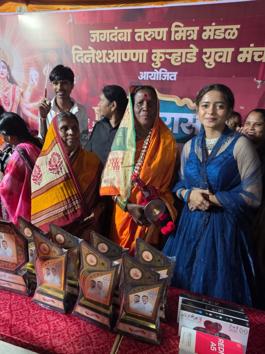 प्रतिनिधी पिंपरी चिंचवड दि. २ आक्टोबर २०२५ : सलग दहा दिवस नवरात्र उत्सव बालाजीनगर भोसरी येथे साजरा करण्यात आला. यावेळी दहा दिवस विविध क्षेत्रातील नामांकित मान्यवरांच्या उपस्थितीत दांडिया खेळत साजरा करण्यात आला. यात हास्य जत्रा मधील हास्यक्विन शिवाली परब व वनिता खरात या उपस्थित होत्या. दररोज विविध बक्षिसांचे वाटप व शेवटच्यादिवशी म्हणजे दहाव्या माळेला परतीच्या पावसात बक्षिसांचा वर्षाव झाला.