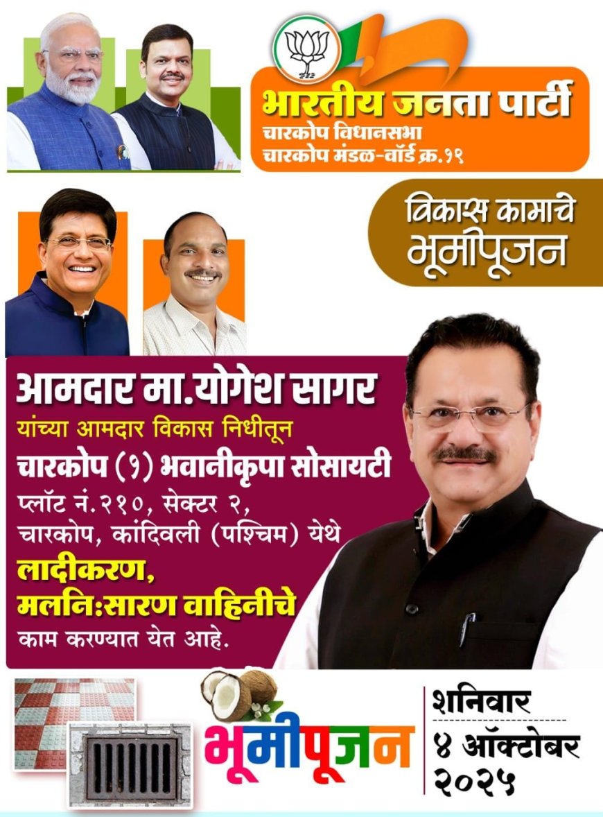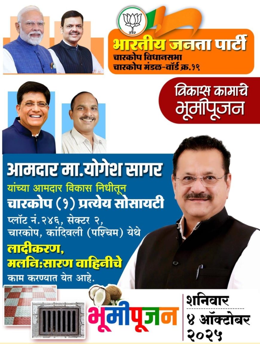 मुंबई उपनगरातील चारकोप विधानसभेचे आमदार योगेश अमृतलाल सागर यांनी 4 ऑक्टोबर रोजी आपल्या वाढदिवसानिमित्त विकासकामांचे भूमिपूजन करून लोकसेवेचा संकल्प दृढ केला.